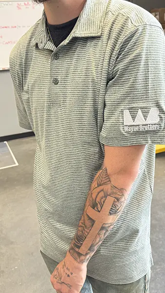 WAYNE BROTHERS logo is embroidered in white on the left sleeve.
